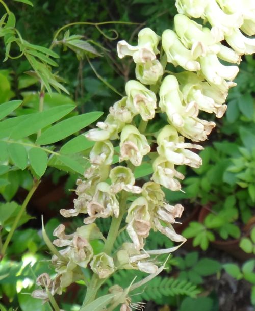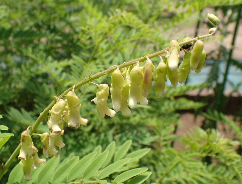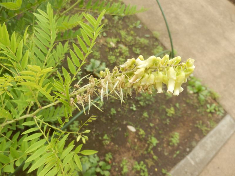 淡黄色の蝶形花を密生させる。