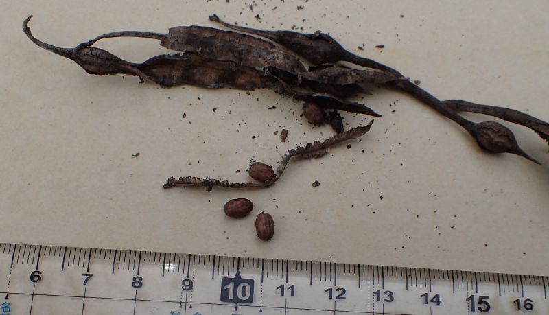 下方では豆果ができはじめている。