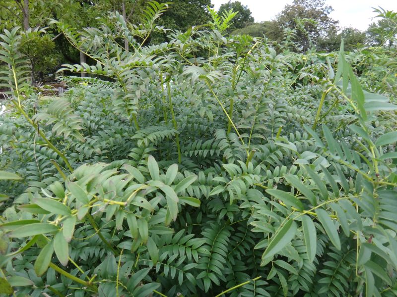 葉は長さ15〜25センチもある奇数羽状複葉で互生し、