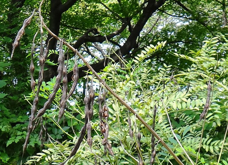 豆果は長さ7〜8センチの円柱形で、数珠状にくびれる。