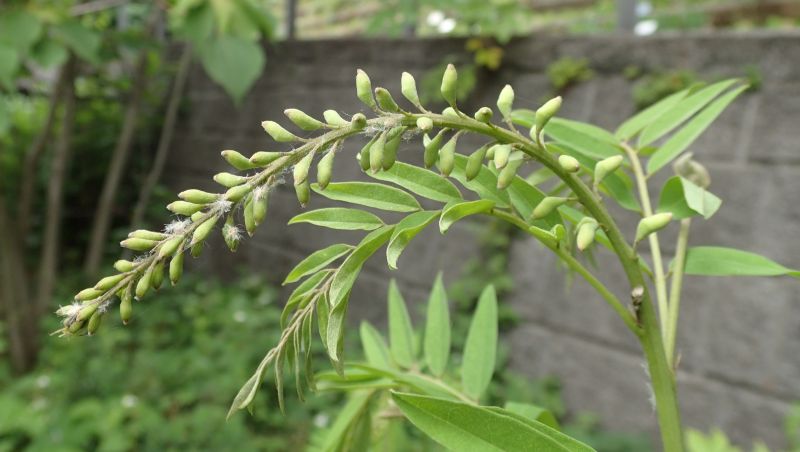 葉は奇数羽状複葉で、小葉は狭楕円形。(2015/9/29)