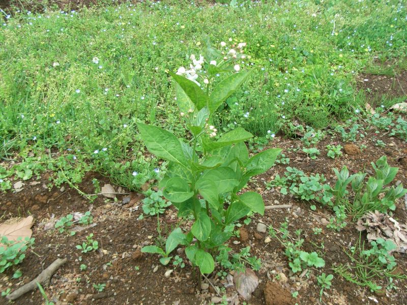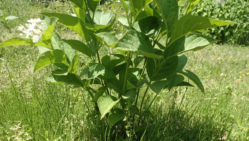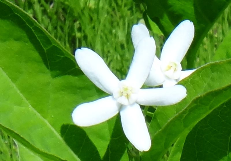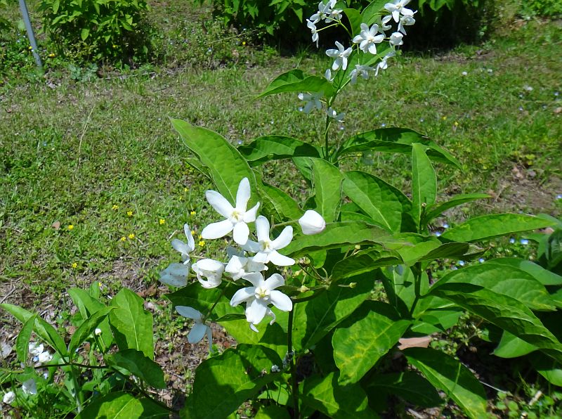 花冠が5深裂した直径約2センチの白い花が散形状に多数咲く。