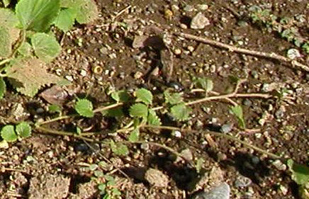 茎は地を這って分枝し、葉は卵形で鋸歯があり、互生する。