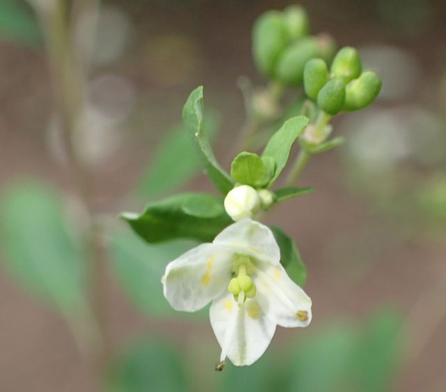茎先の集散花序に白くて小さい花をまばらにつける。(2016/10/27)