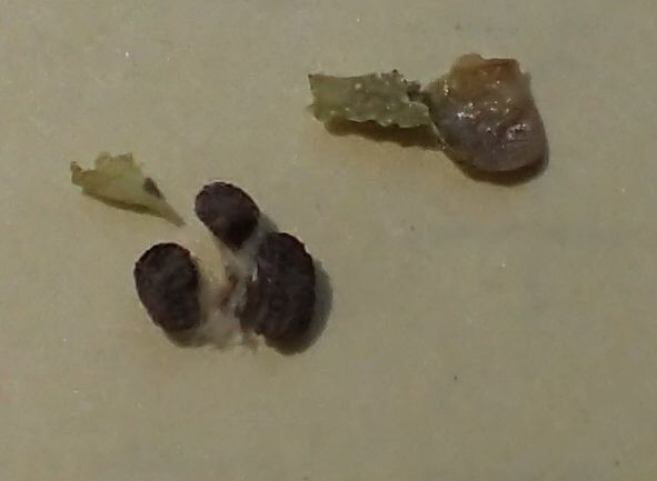 各分果に暗褐色で腎形の種子が数個ある。