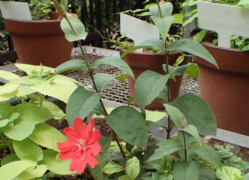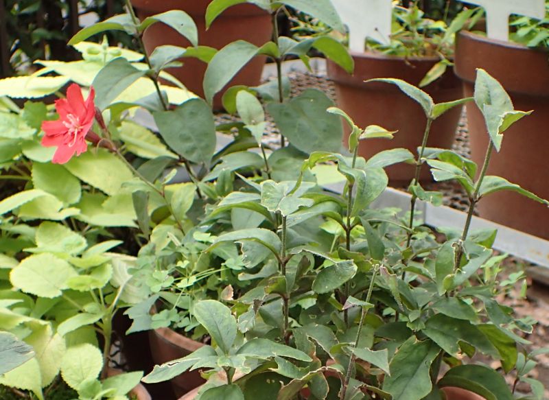 花の赤い株では葉が赤みを帯びることがある。(2017/6/6)