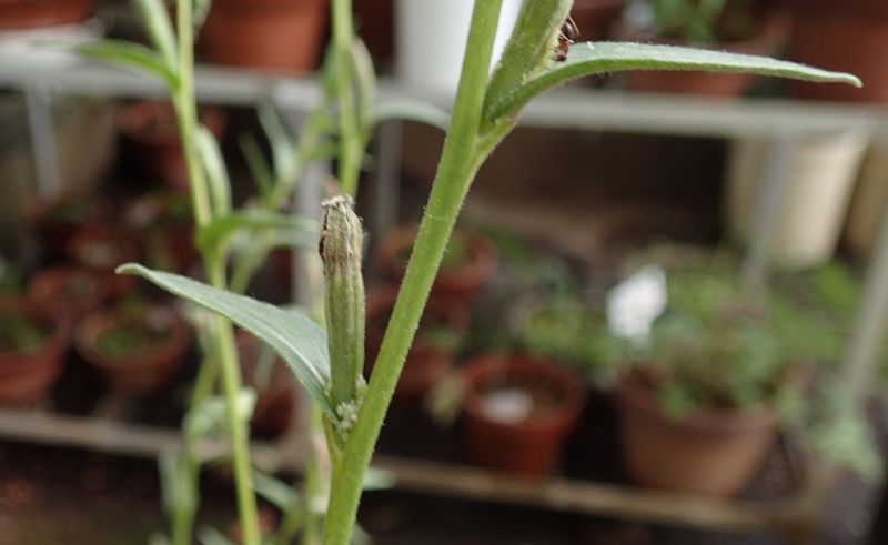 茎は分枝して直立し、上向きのかたい毛がある。