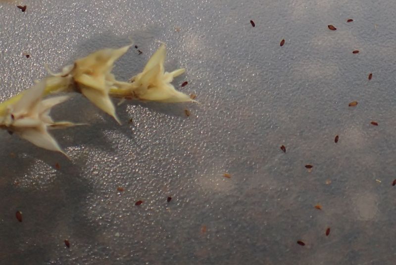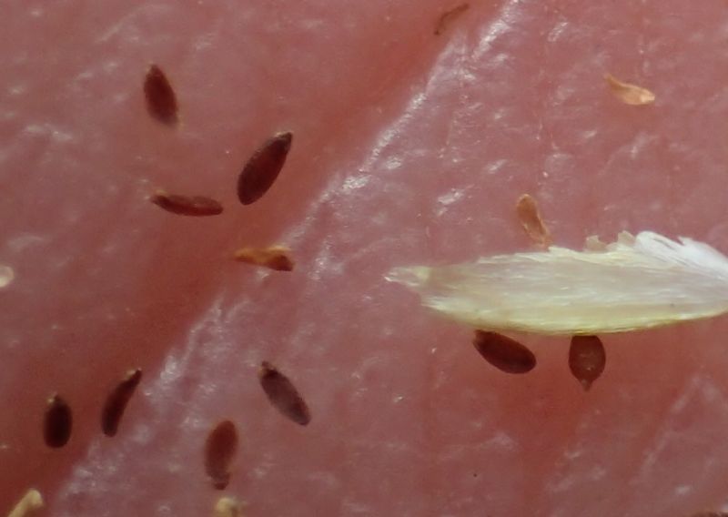 種子は赤褐色の楕円形で、長さ1ミリに満たないごく小さいものである。