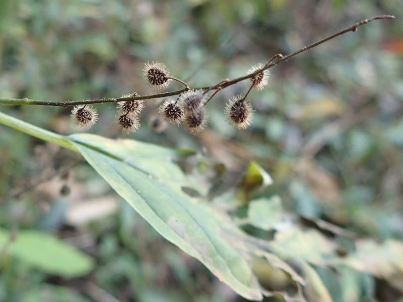 直径3〜4ミリの広卵形の堅果が褐色に熟し、