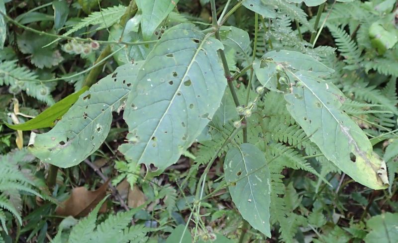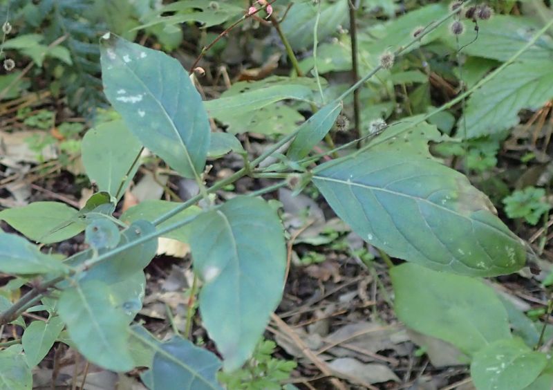 葉は先のとがった長卵形で対生し、浅い鋸歯がある。