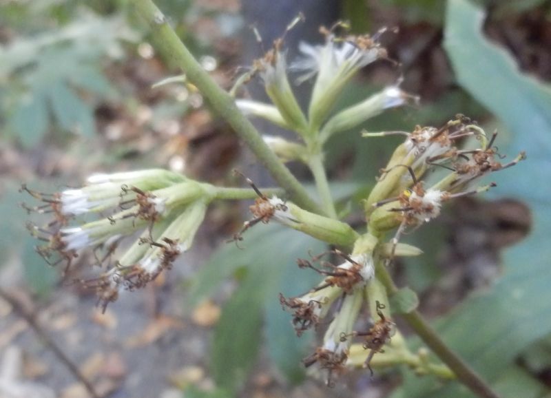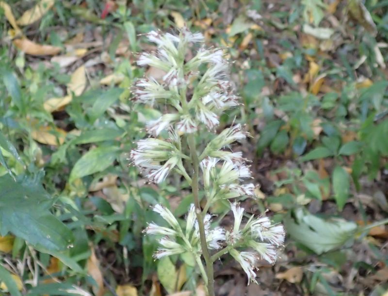 コウモリソウ属、花は筒状花のみ、多年草。