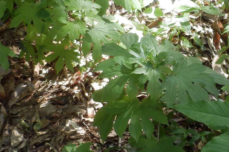 大きなモミジ葉のような葉が林床に広がる。(2016/5/5)