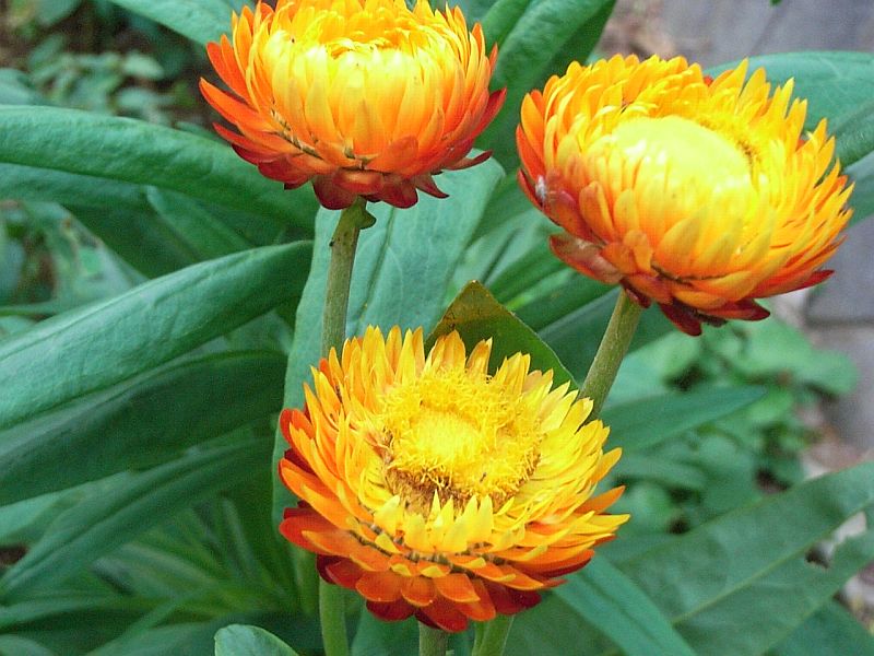 総苞片には金属光沢があり、白、黄色、オレンジ、