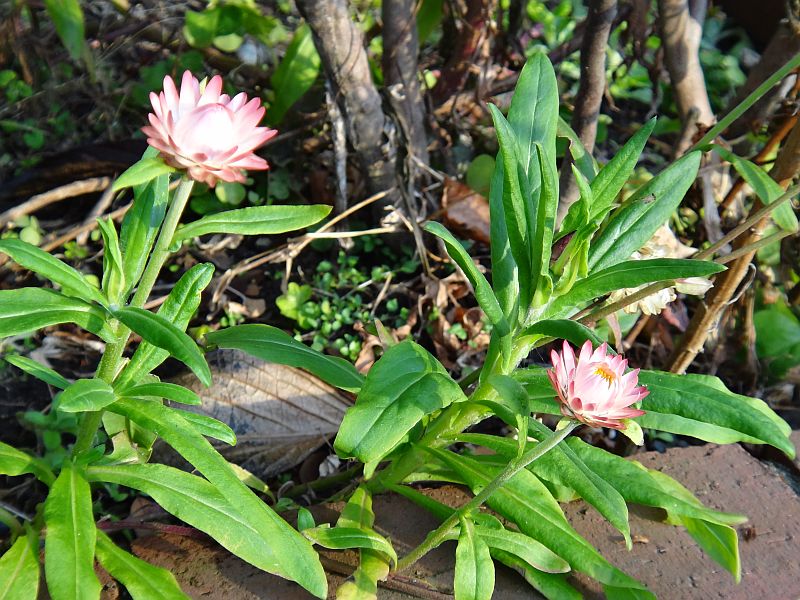 ムギワラギク属、筒状花のみ。1年草(原産地では常緑低木)。
