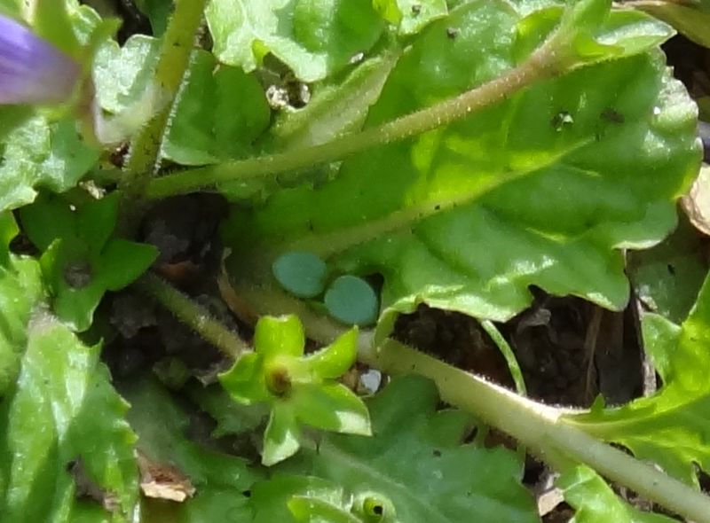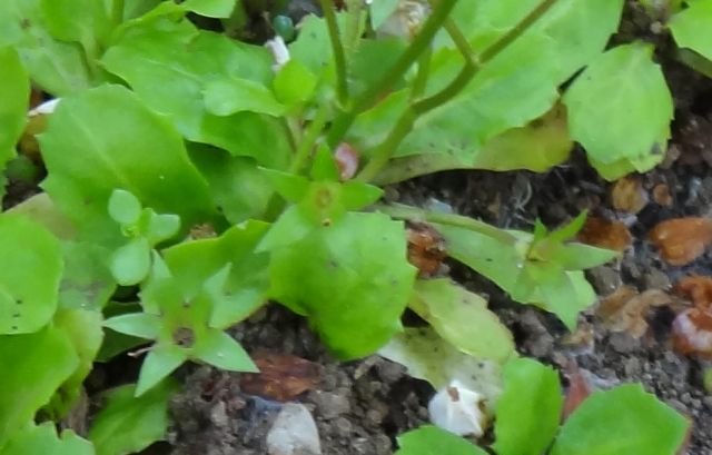 葉は倒卵形。茎は少し立ち上がる。(2016/4/15)