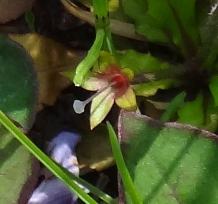 ウリクサ :葉は広卵形、花に黄色い斑紋、新分類ではアゼトウガラシ科。