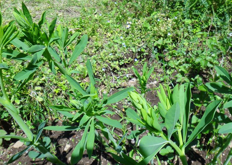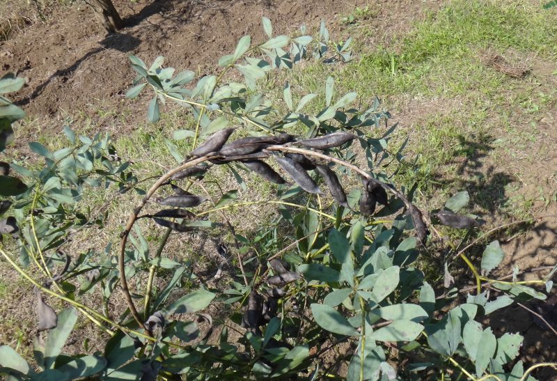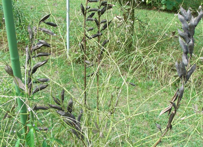 豆果は熟すと黒くなる。茎は細長い。