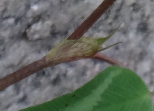 葉柄の基部に膜質で編み目模様があり、先の尖った托葉がある。(2016/12/2)