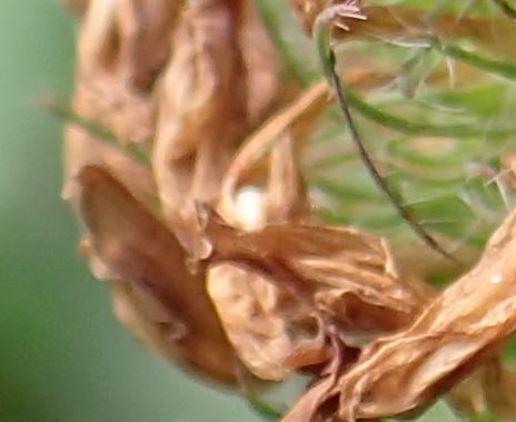 花後に枯れた花の中に、扁平で倒卵形の種子が1つ含まれる。