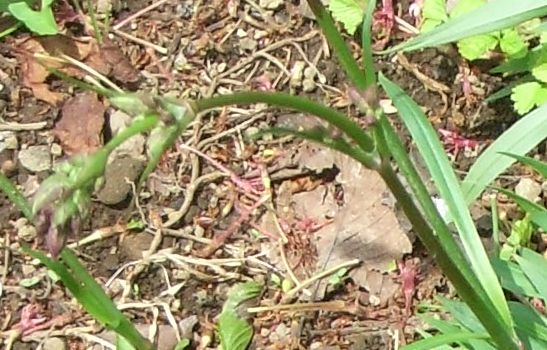 花序の下の茎に粘液が出て粘る茶色の部分があり、