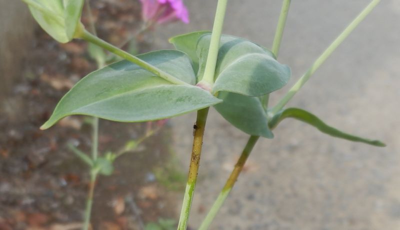 葉は長卵形で茎を抱き、対生する。葉は縁が少しくねる。(2010/5/30)