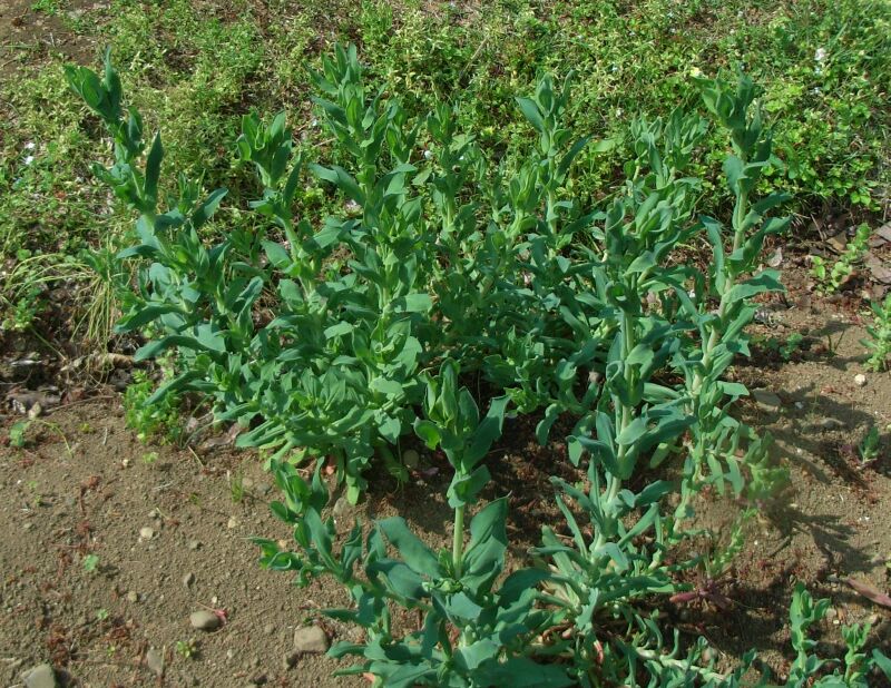 茎や葉は無毛で粉白色を帯びる。