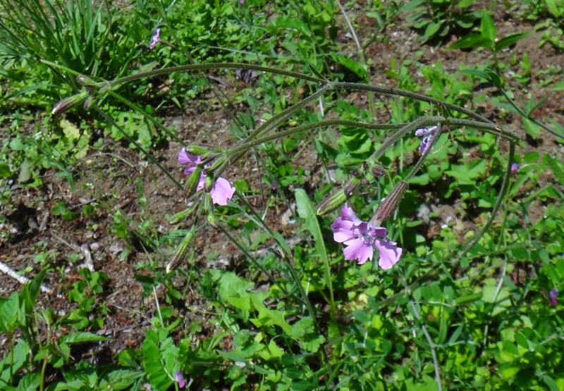 茎や葉は粉白色を帯び、長い萼筒を持つ薄紅色の花が束になって咲き、