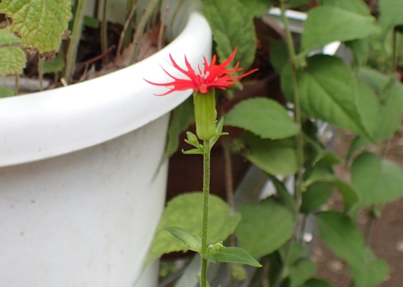 披針形の葉が対生し、基部は茎を抱き、花びらの先が糸状に裂けている