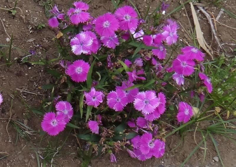 5弁で、花弁の先が細かく切れ込み、色は多彩である。(2017/5/9)