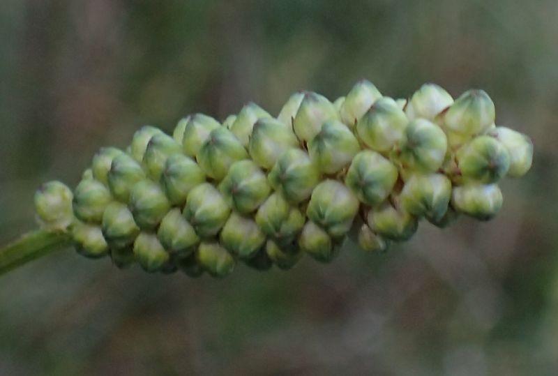 花穂には小さな白い花が密生し、それには萼はあるが花弁はなく、