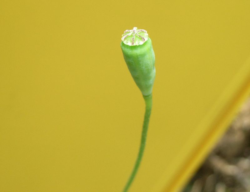 細長い実(芥子坊主)がつく。