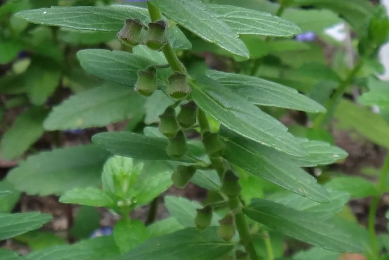 ハンシレン :高さ40〜50センチ、葉は1.5〜3センチの広卵形で毛少ない、鋸歯7〜8対、花は枝先。