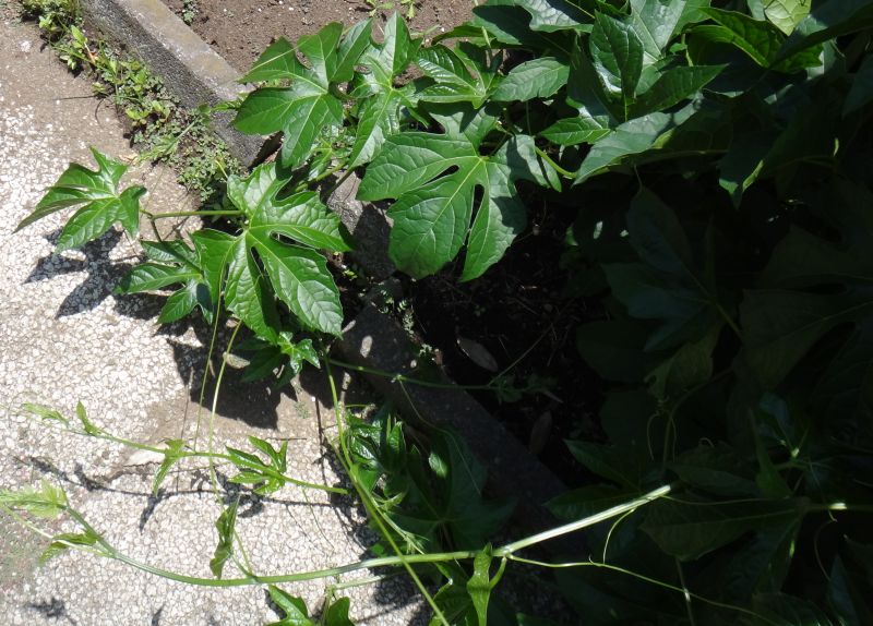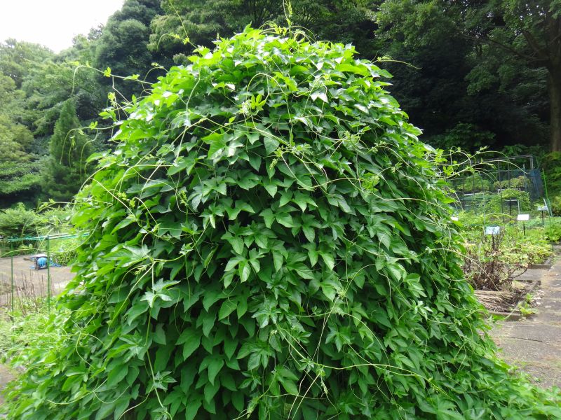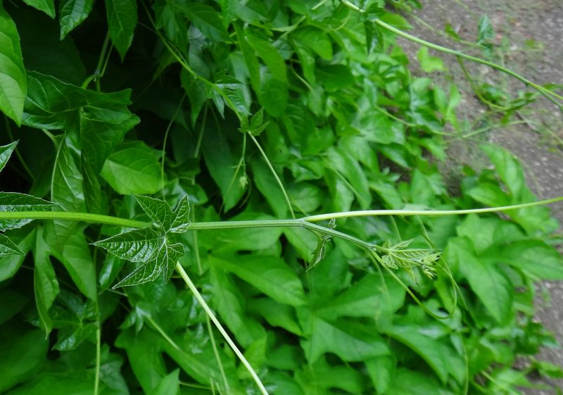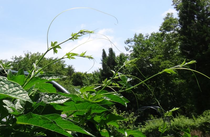 つるが旺盛にのびて、ひげづるで絡む。