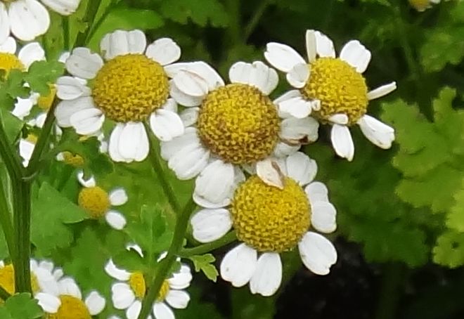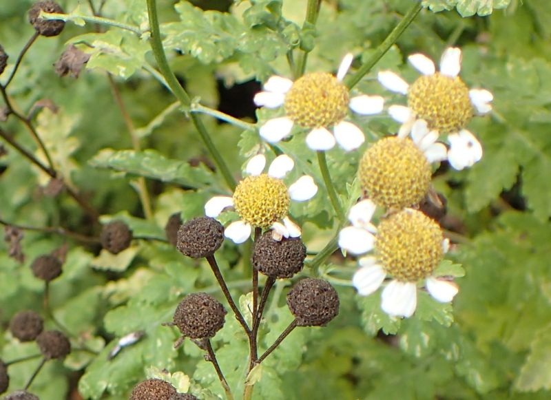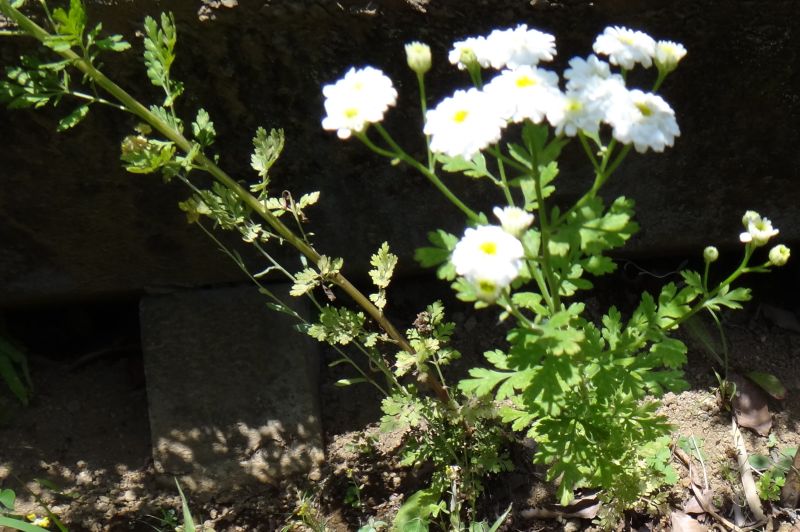 ヨモギギク属 舌状と筒状花をもつ、常緑、多年草。