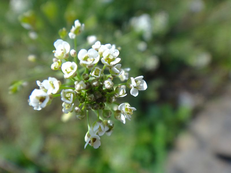 直径約3ミリの白い4弁花を多数つけ、下から順番に咲いてゆく。