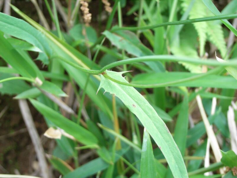 茎葉は互生し、基部が張り出して茎を抱く。基部に歯牙が数個並ぶ。(2009/5/19)