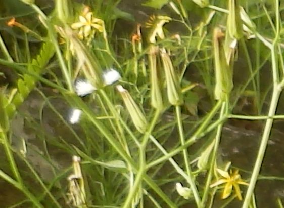 紡錘形のそう果は熟すと白い冠毛をもつ。