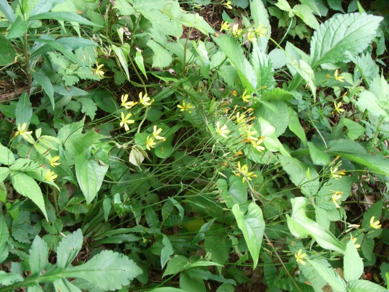 茎は細くて直立し、上方でよく分枝する。