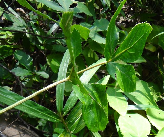 小葉は先が尖り気味の長楕円形で、粗い鋸歯があり、