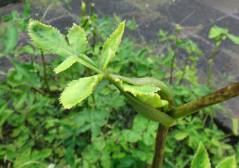 茎葉の葉柄の基部は膨らんで茎を抱く。(2015/5/6)