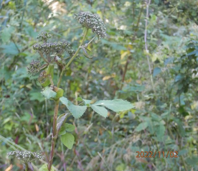 葉は3出複葉で互生し、花は複散形状に咲く。(2022/11/2)