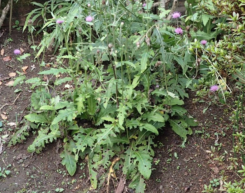 頭花は紅紫色で、総苞片は斜め上にのびて少し反り返る。(2015/10/19)