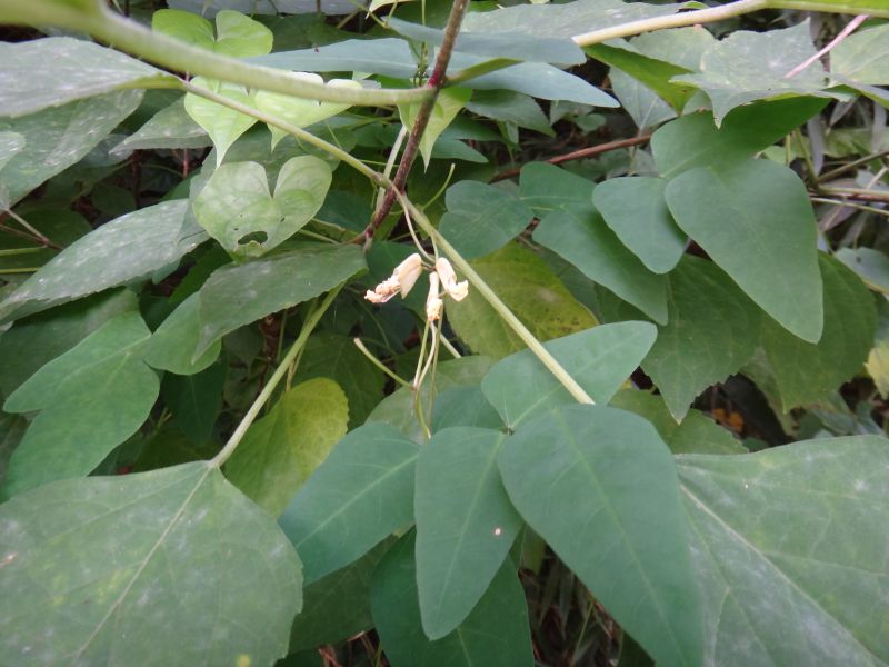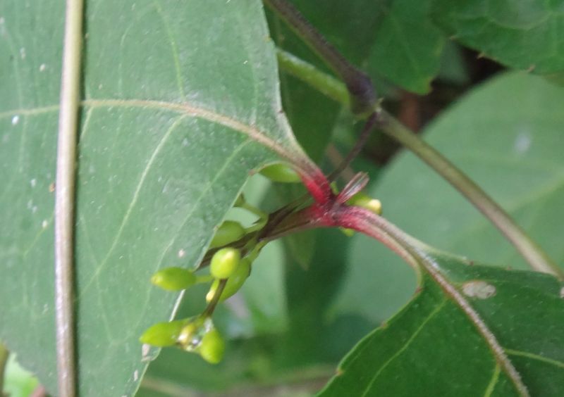 茎は細くて他物にからみついて長くのび、淡い黒紫色を帯びることが多い。