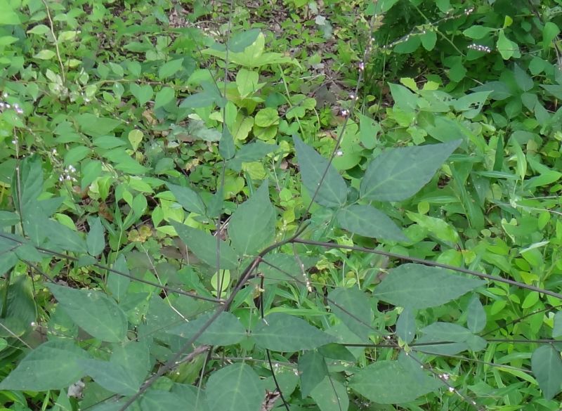 茎は細くて固く、葉ができるだけ広がるように角度を変えて枝を出す。(2016/7/28)