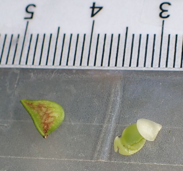 長さ5〜7ミリの半月形の小節果が2つ並ぶ。