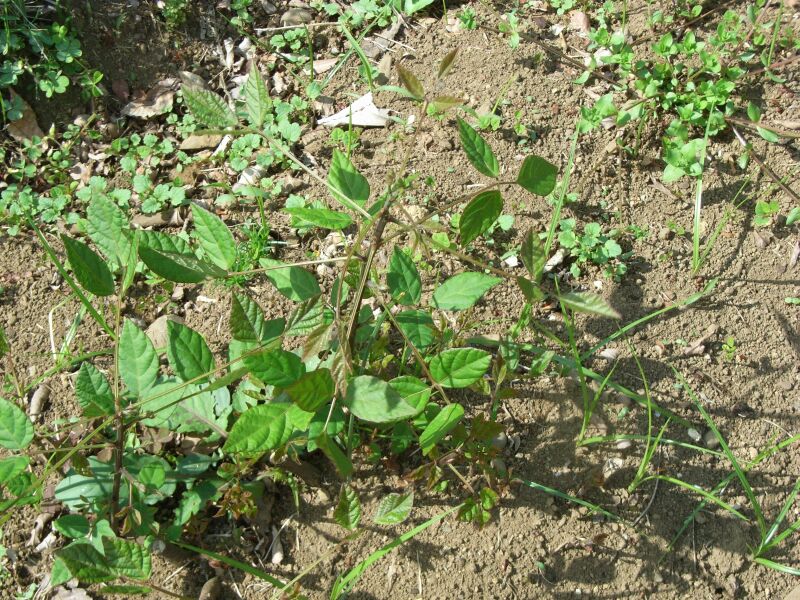 葉は3出複葉で小葉は長卵形。頂小葉には柄がある。