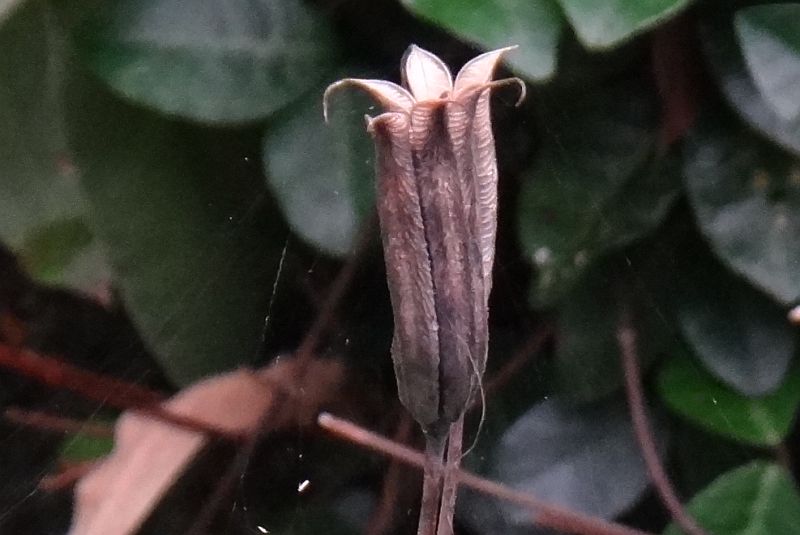 5枚の萼片が花弁のように見え、その間から角状の距が出る。