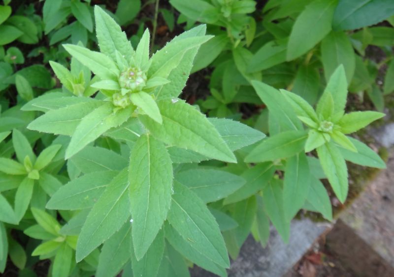 茎葉は先のとがった長さ5〜10センチの広披針形〜長楕円形で、鋸歯があり、