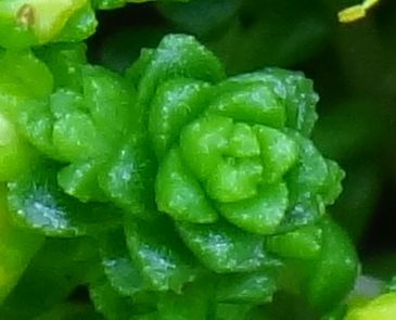オカタイトゴメ:葉は約8ミリの長楕円形で、粒状突起あり。