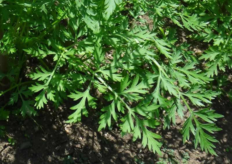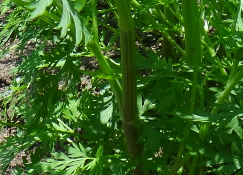 葉は互生し、卵形で2〜3回羽状に細裂し、裂片の先は鋭角となる。
